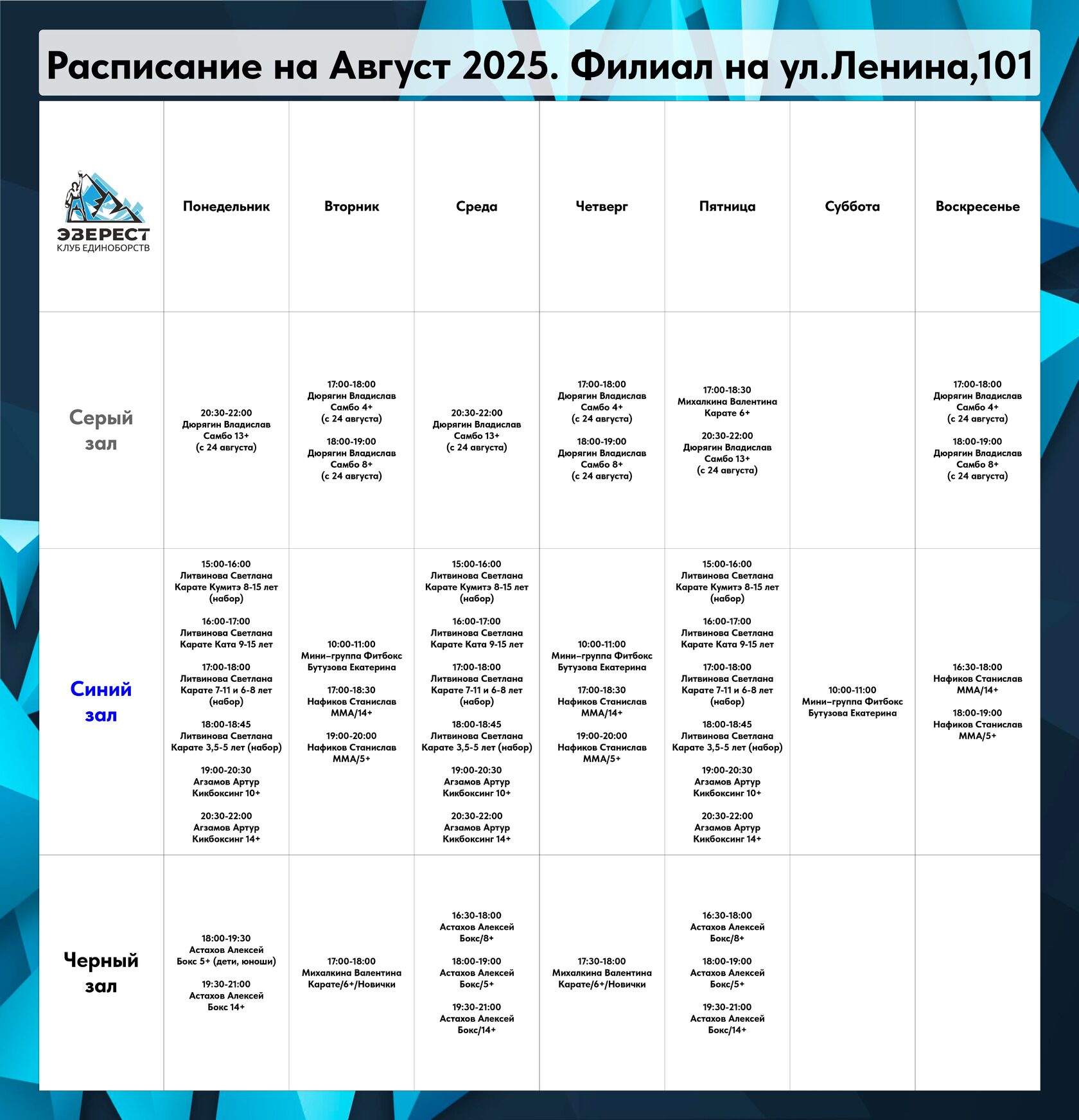 Расписание на август (возможно, в течение месяца будут небольшие изменения — следите за обновлениями!)